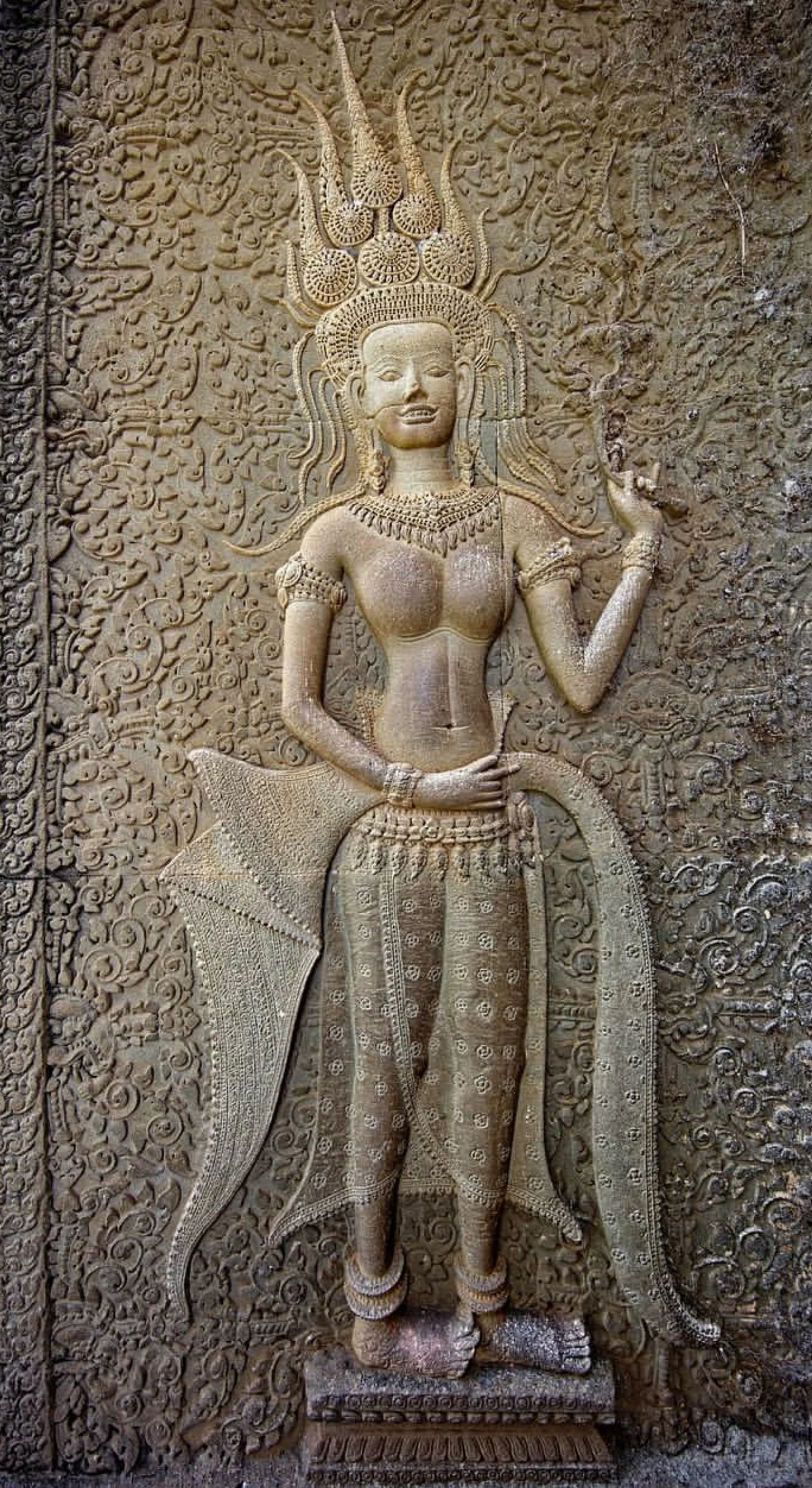 Devata sculpture on the wall of Angkor Wat, 21 February 2020, Vann Thara – Wikimedia Commons.