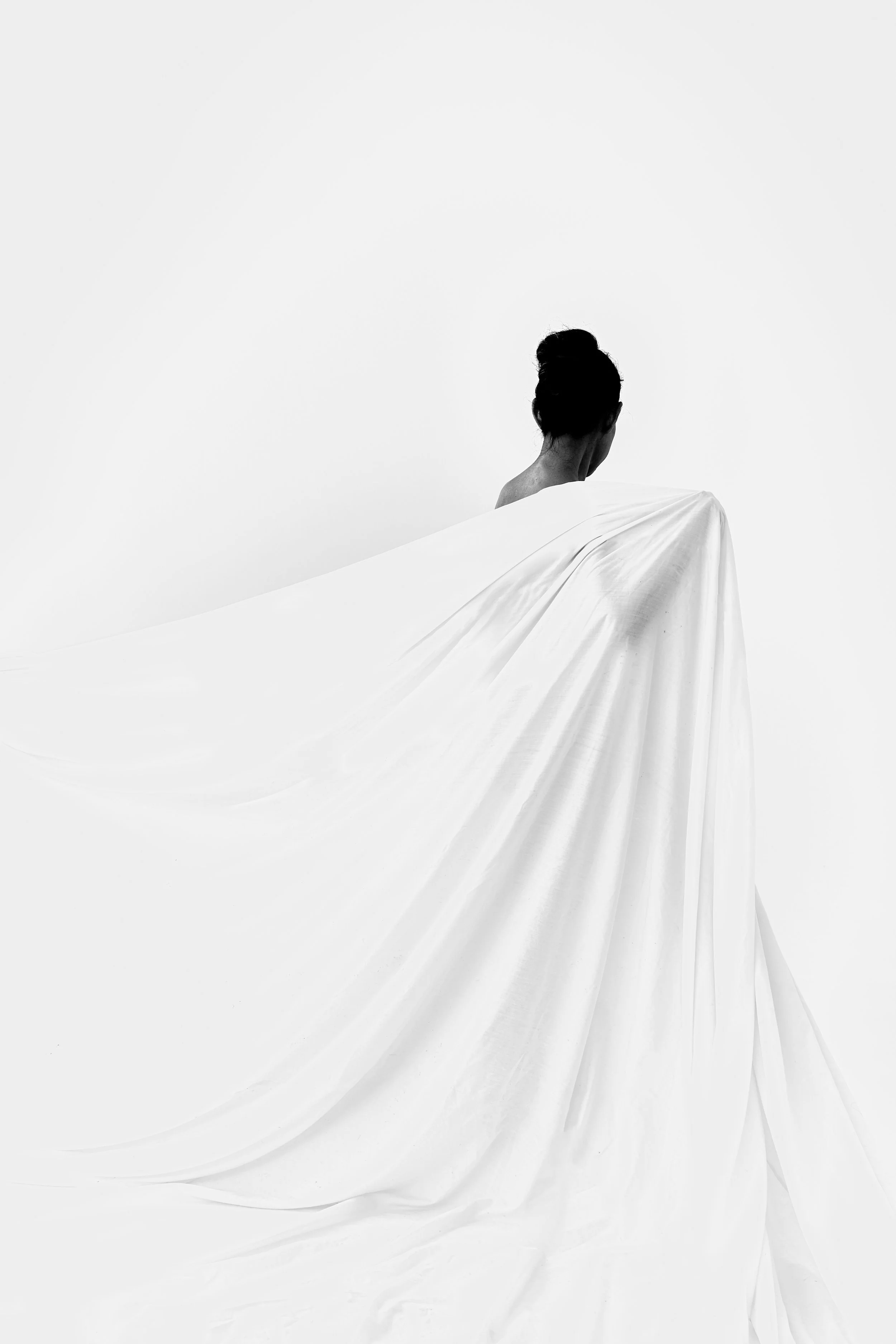I prepared the white cloth that the individuals would work with for the photoshoot session. I was in charge of helping the models find their way with the cloth and building that narrative with them. For example, when I see that they’re pulling towards a certain side, I try to counter that weight to add tension to the cloth. When I see that there’s a need for the fabric to flow, I would then have to gather the cloth and let it artfully fall where we need it.