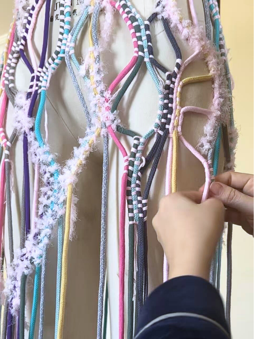 Freestyle weaving behind the ‘Glitch Theory’ collection. Image courtesy of LE NGOK.