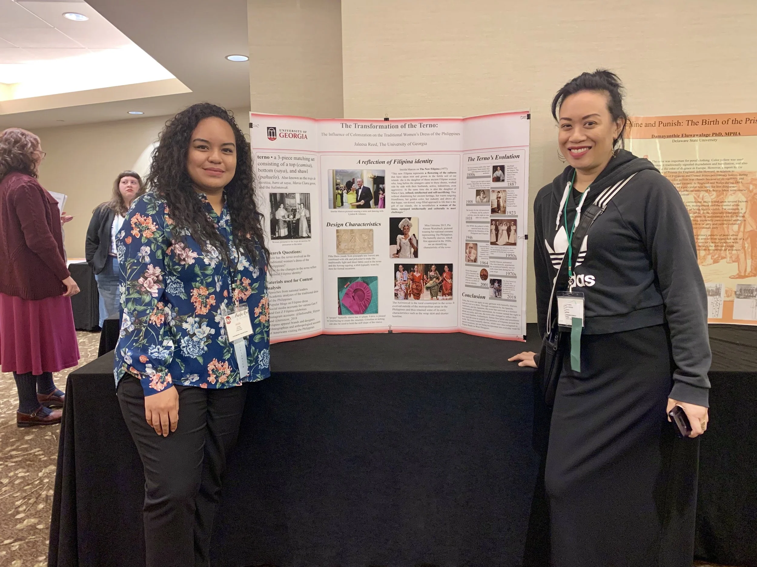 Jaleesa Reed presenting “The Transformation of the Terno: The Influence of Colonisation on the Traditional Women’s Dress of the Philippines’ at the 2019 Costume Society of America National Symposium in Seattle, Washington. Pictured with Lotta DeBoa, creator of THE FASHION MAP. Image courtesy of Jaleesa Reed.