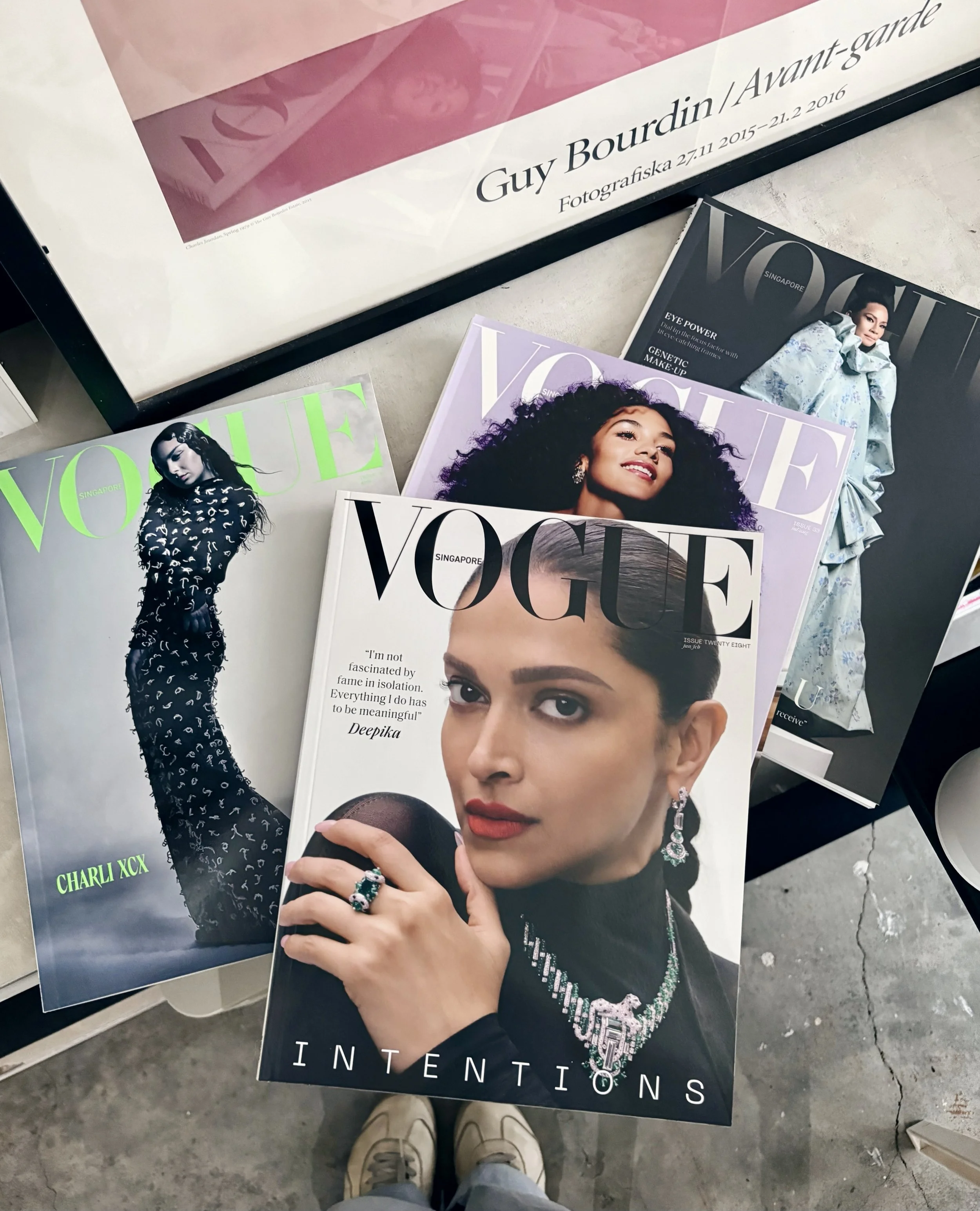 Photo of past Vogue Singapore issues that Ray posted on Instagram on the last day of her job. Image courtesy of Chandreyee Ray.