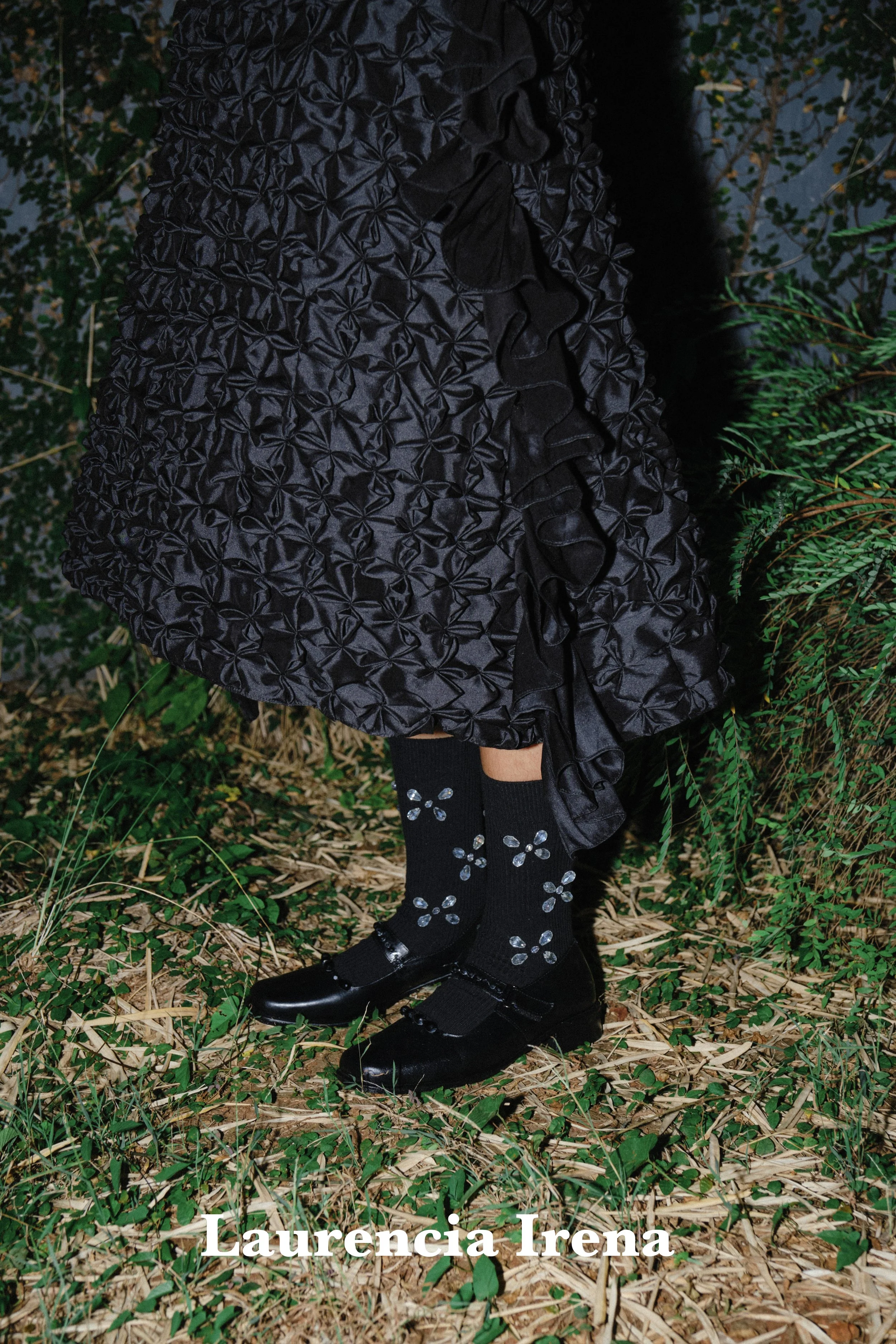 The garments, which portray a flower field, are playful, feminine, and simultaneously unorthodox. The more whimsical elements are portrayed through fabric manipulation and colours, while the mystical elements are shown in the styling and silhouettes of the collection.