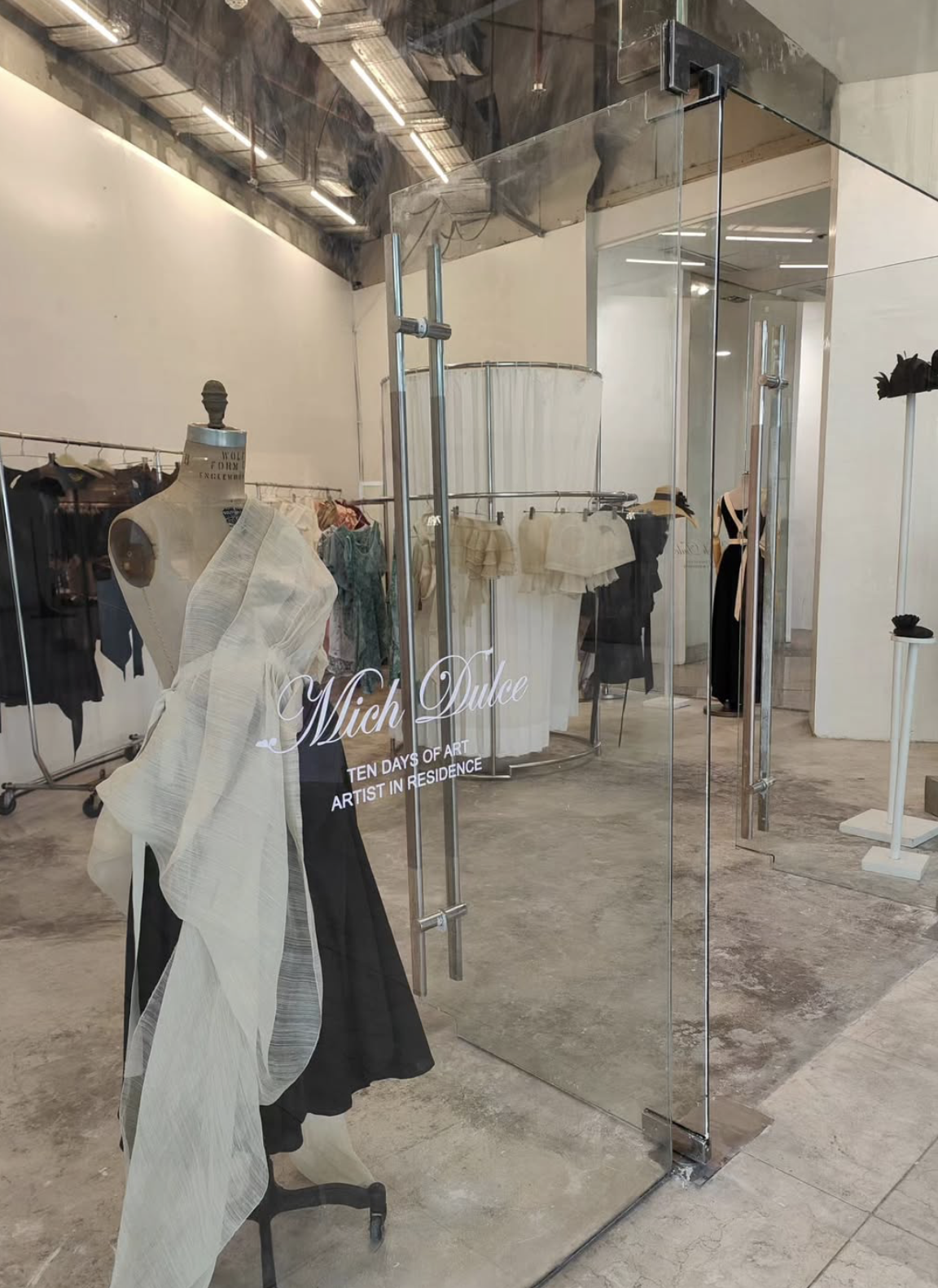 Mich Dulce is a Manila-based designer and milliner whose practice sits at the intersection of fashion, craft and cultural advocacy. Known for her considered use of indigenous Filipino materials such as piña and T’nalak, her work combines traditional techniques with a contemporary, often sculptural sensibility. Her recent pop-up residency invites visitors to engage directly with her process through a presentation of new and archival pieces, alongside fittings for bespoke garments and headwear.