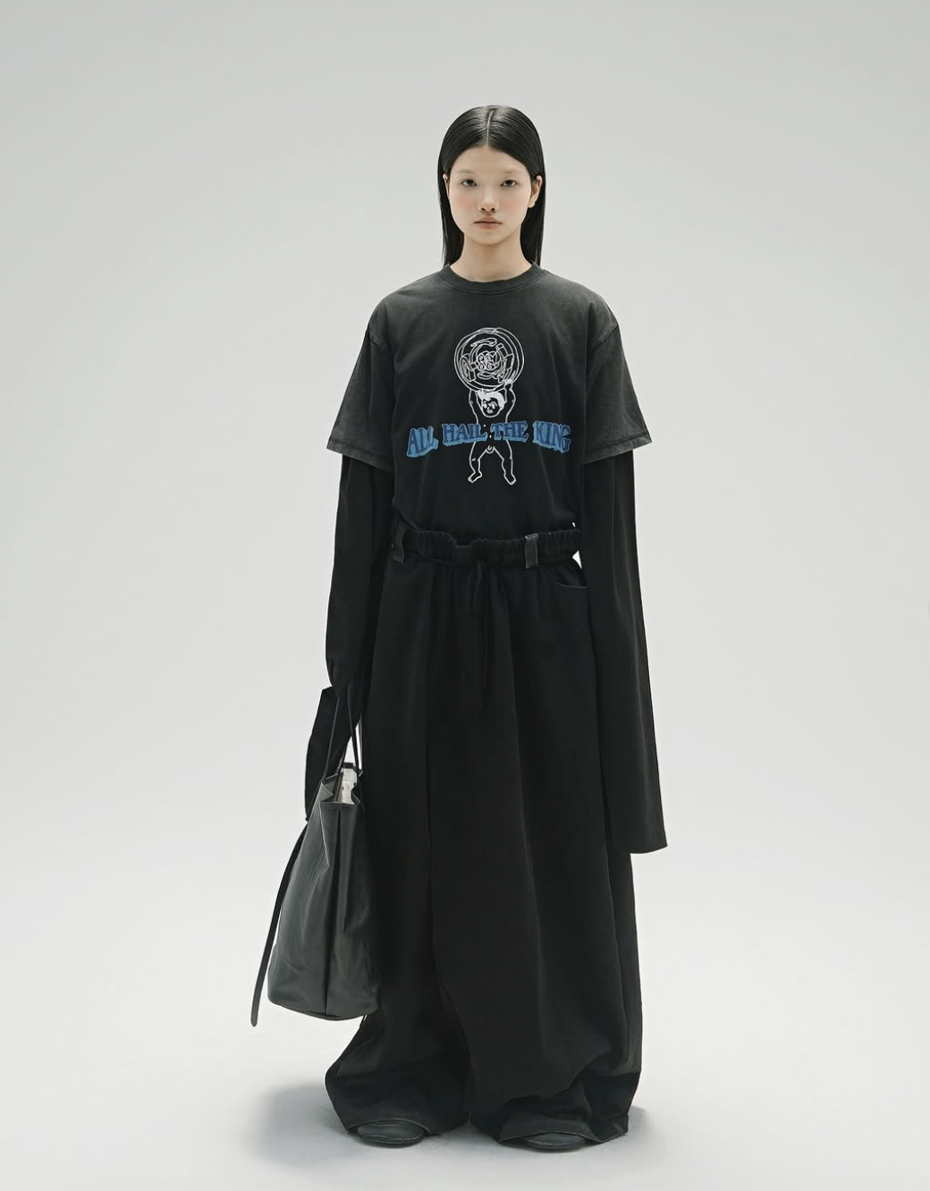 Rakkiu channels the alchemy of streetwear and heritage. Founded in Hanoi in 2020, the label draws from the raw spirit of hip-hop and skate culture, reimagined through vintage washes, hand-stitched detailing, and pared-back tonal palettes. Its latest collection sharpens this study of proportion and utility, staging layered compositions and understated graphics: an oversized tee with floor-grazing trousers and a capacious tote; a reconstructed polo spliced into tailored wide shorts. Together, the pieces extend Rakkiu’s ongoing inquiry into how modular, everyday garments can be re-engineered into a new kind of contemporary uniform.